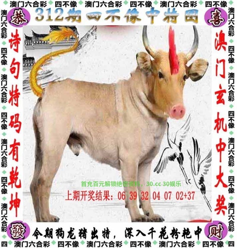 | 312期:七肖 | 牛猴马猪羊龙虎 | 开:龙14准 |
