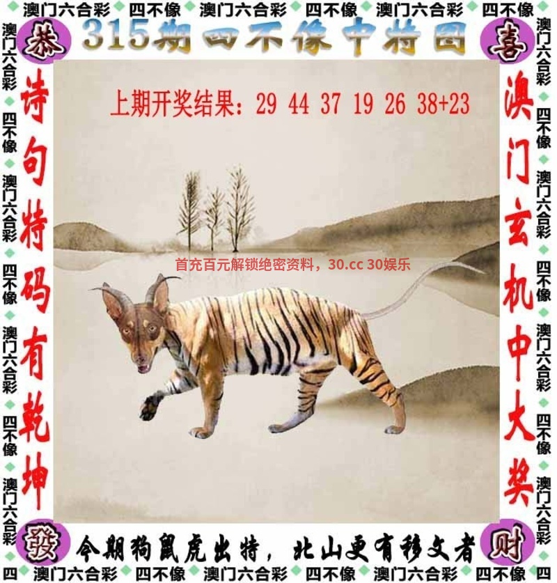 | 310期:【千王之解四不像】今期马兔鸡出特,能均汉祚三分业。 【平尾】999尾 |